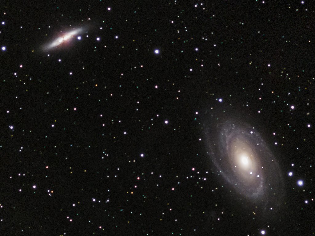 Myös tässä galaksissa on kohtaamisen jäljiltä havaittavissa tähtien syntyaktiivisuuden kasvua, mutta niiden merkkejä ei erotu Seestarilla edes kahden yön valotuksenkaan jälkeen.