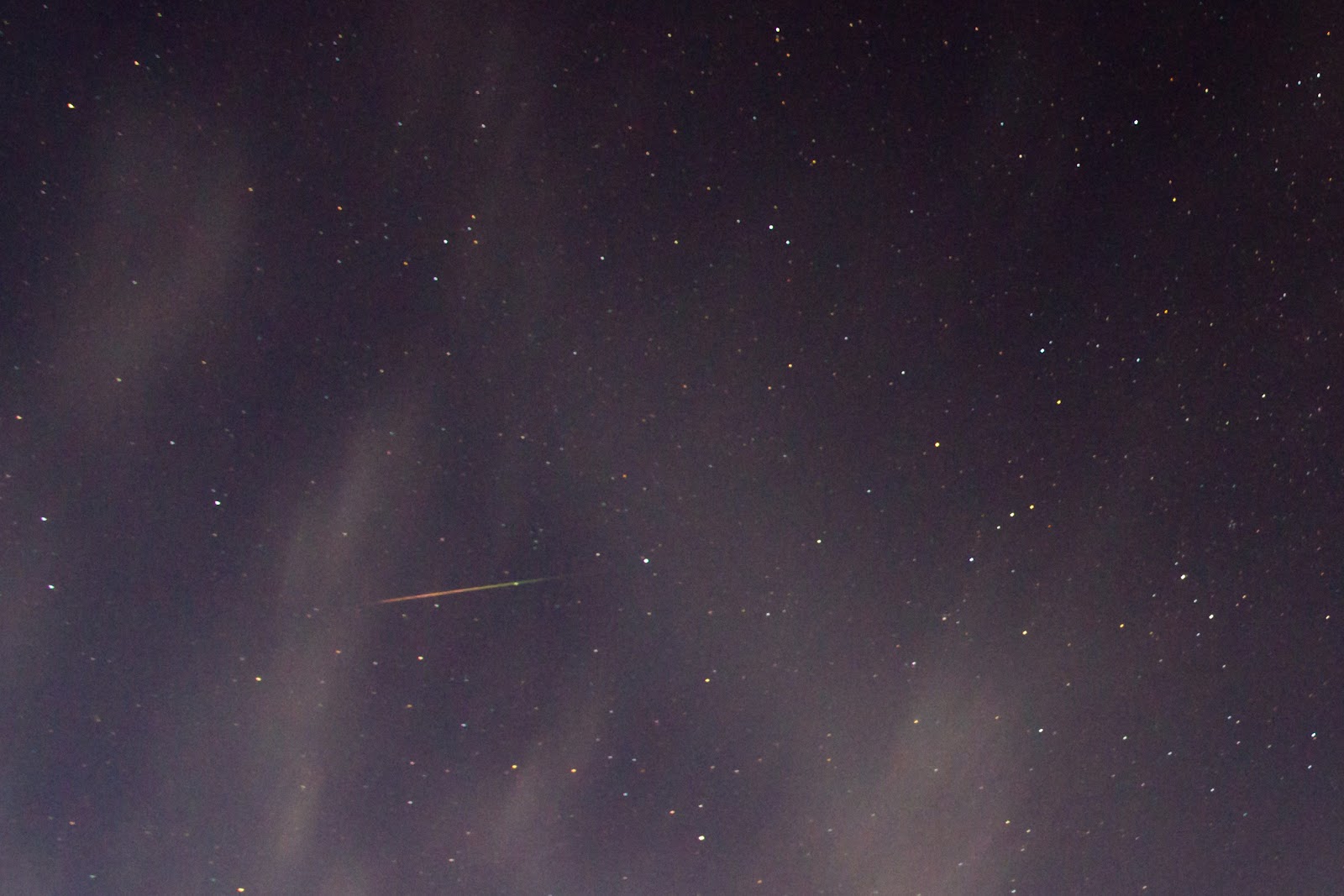 Aikaisemmin klo 00.10 näkyi ensiksi kirkas kipinöivä tulipallo keskellä taivasta. Sitten melekein heti perään ”tavallinen” tähdenlento. Äsken 00.35 himmeä tähdenlento.
