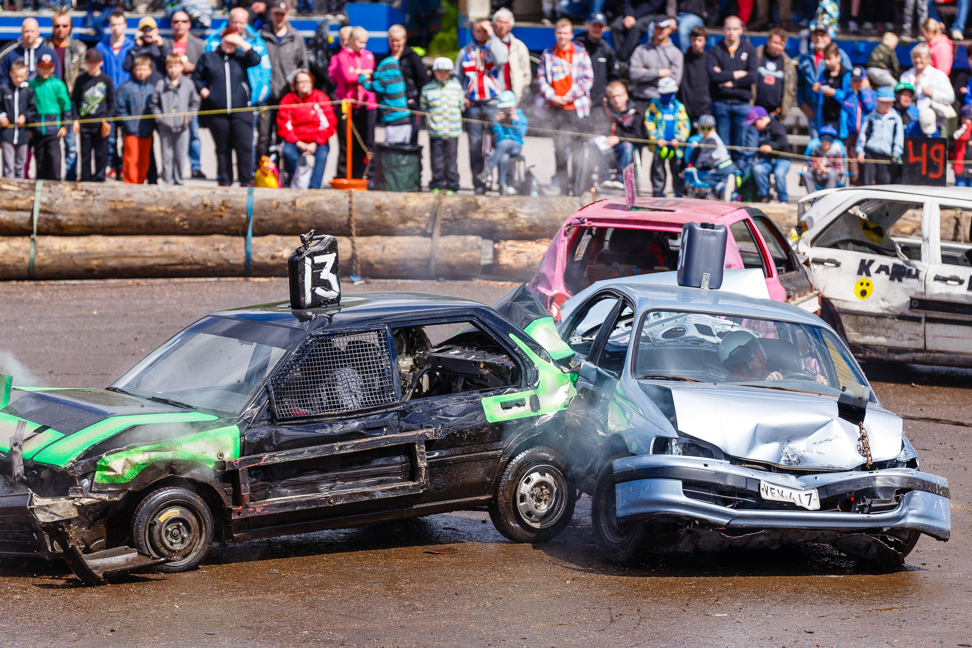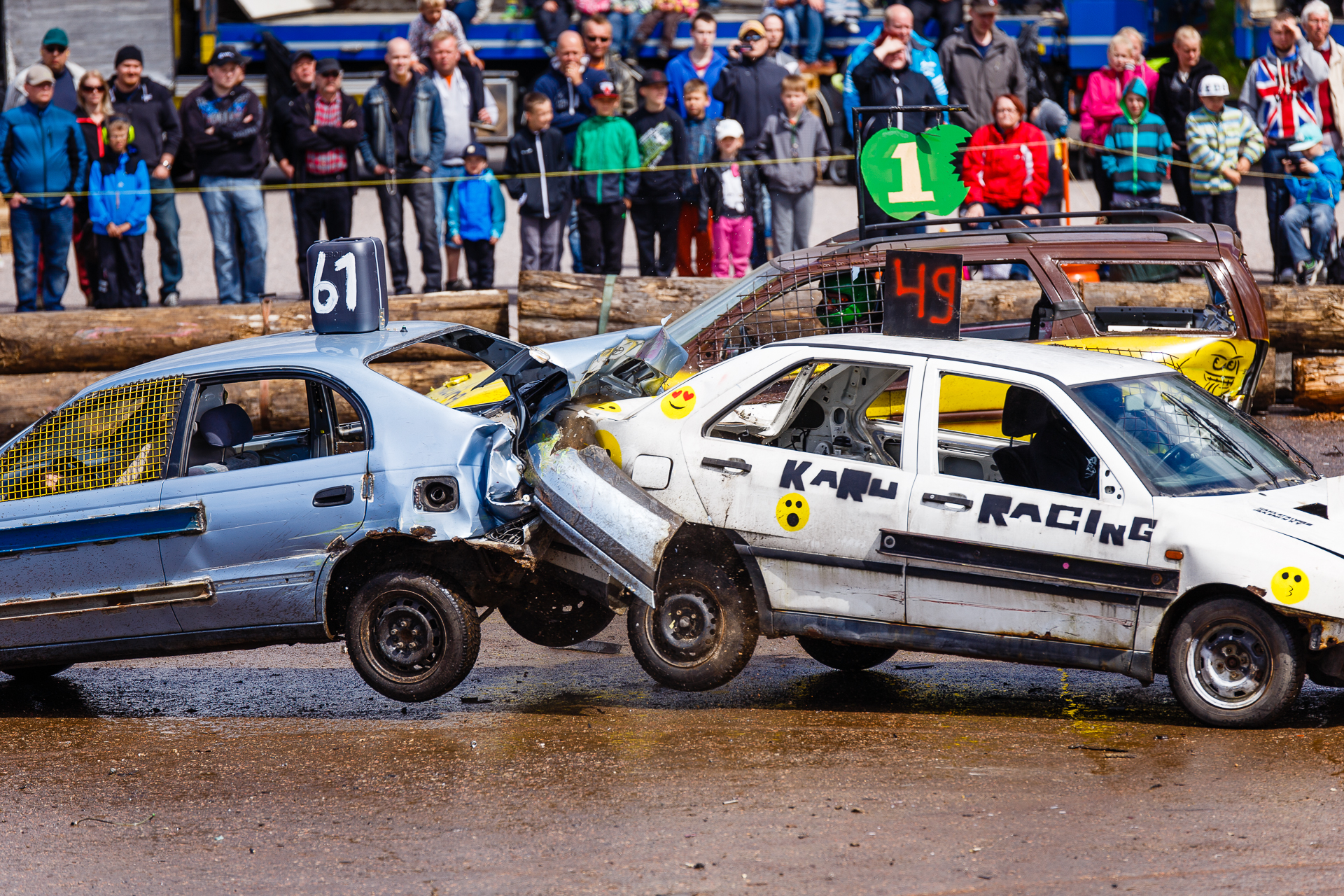 1. Kiitos Daphnion. Ääni kasvoi ja soundit paranivat kisan edetessä kun autoista tippui osia. Loppujen lopuksi äänenpaine jäi kuitenkin ihan siedettävälle tasolle verrattuna moneen muuhun moottoriurheilun lajiin.
