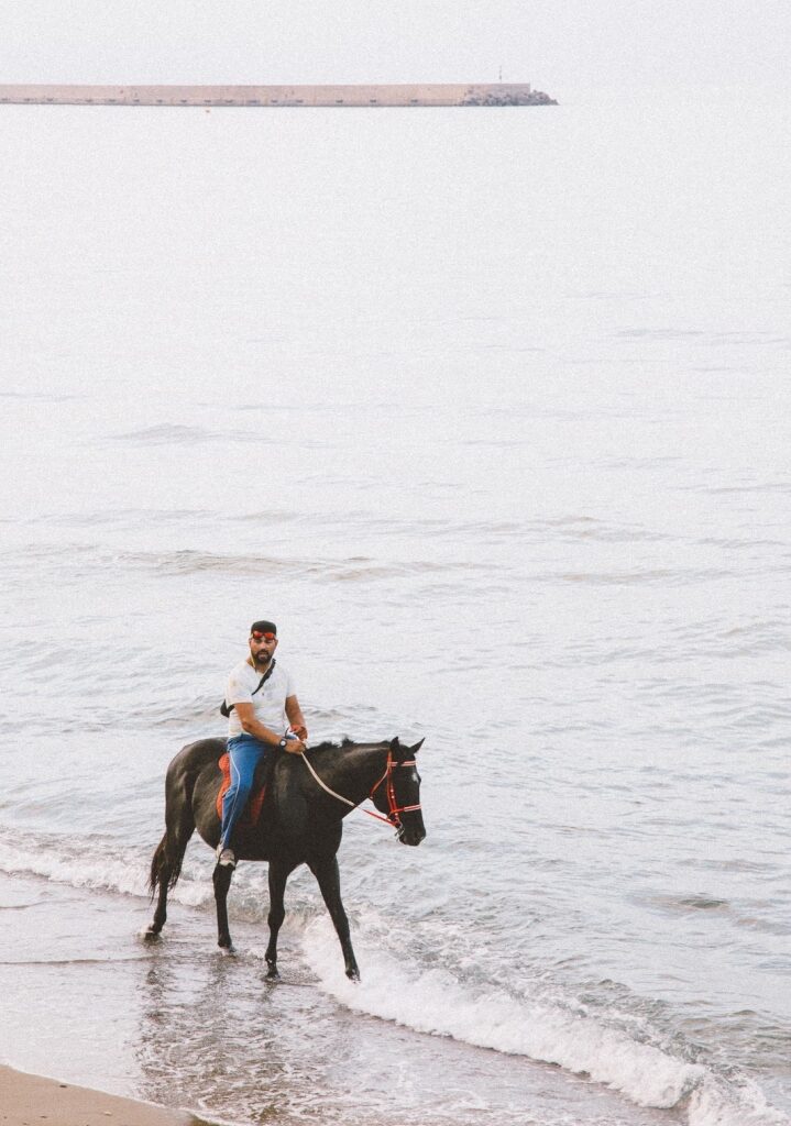 Raavaan romanttisesti rannalla ratsain