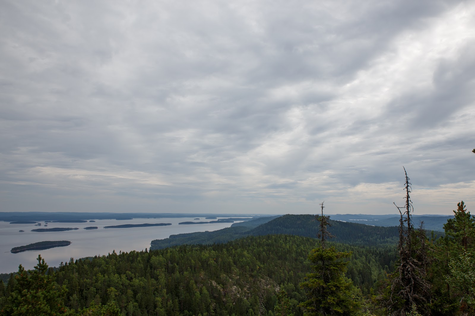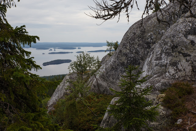 Tämä on minun 555 postaus, joten nyt on hyvä paikka julkistaa Koli-trilogiani viimeinen osa. Tiistai oli pilvinen ja saimme myös muutaman sadepisarankin päällemme, mutta siitä huolimatta/johtuen sain muutaman ihan onnistuneen otoksen. Onnistuneen siksi, että nämä kuvat ovat toisella tavalla kauniita kuin maanantaina kuvaamani aurinkoisen päivän kuvat. Maisema on vaikuttava myös pilvipäivänä, joten edes sade ei ole hyvä tekosyy olla lähtemättä kolille.